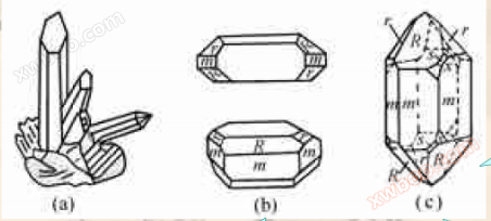 (c)石英品体俗称水品,有天然和人工之分。目前传感器中使用的均是以居里点为573·c, 品体的结构为六角品系的a -石英。其外形如图所示,呈六角棱柱体。